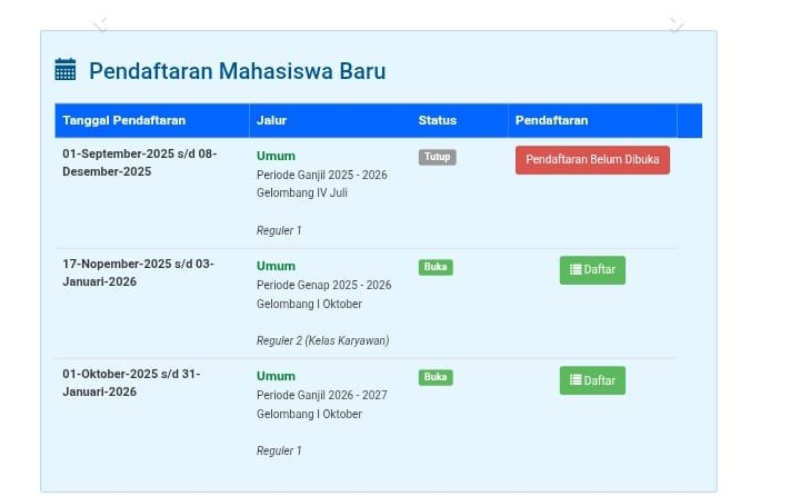 JADWAL PENDAFTARAN MAHASISWA BARU